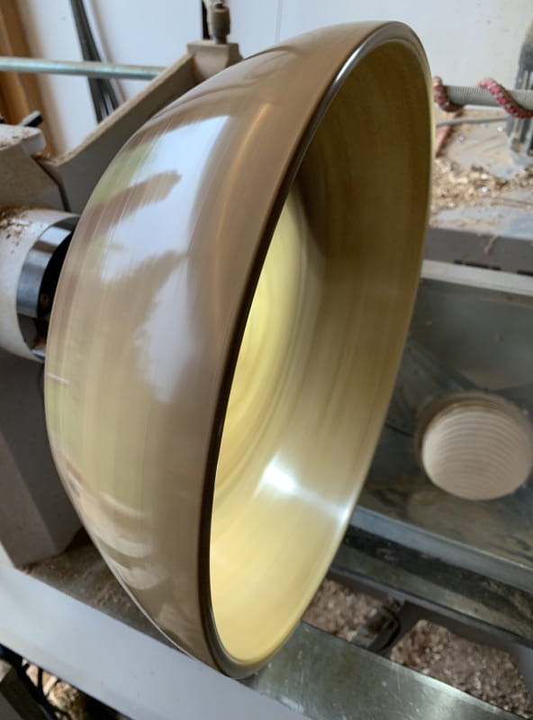 - włączyć tokarkę i przy 800 do 1000 obr/min polerować powierzchnię poprzez stopniowe zwiększanie docisku. Aby woski i żywice prawidłowo związały się i utworzyły jednorodną warstwę, konieczny jest odpowiedni nacisk