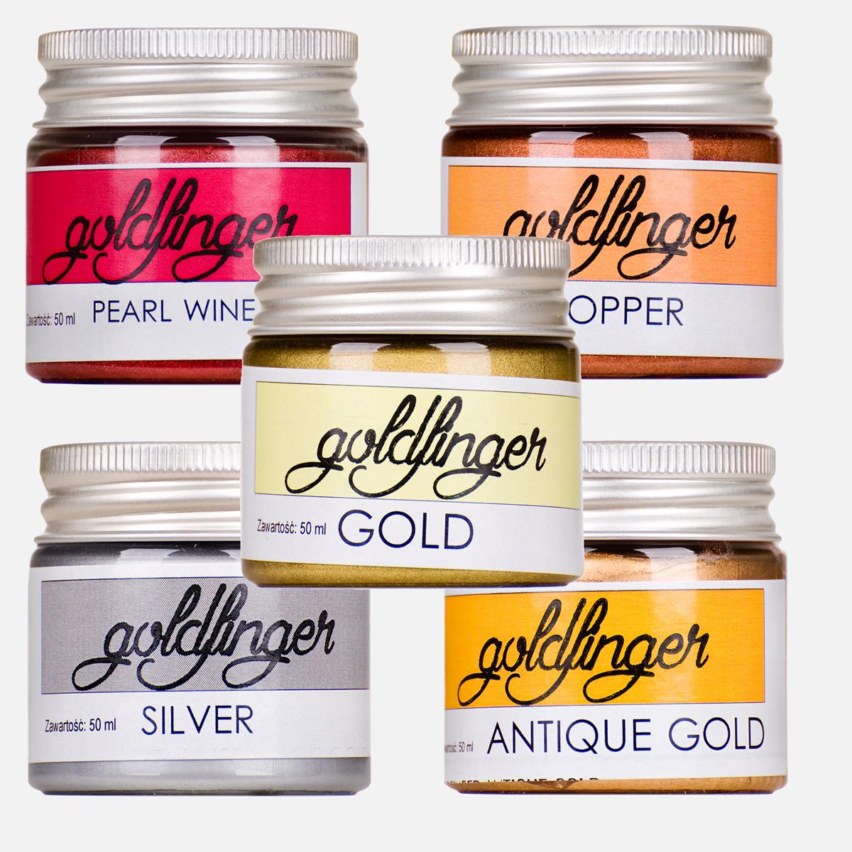 Goldfinger to seria past pozłotniczych na bazie wosków naturalnych i syntetycznych. Do renowacji antyków, złoceń, do stosowania na glinie, drewnie, gipsie, tekstyliach, do zastosowań modelarskich. Przyjmuje się praktycznie na każdej twardej powierzchni, poprzednio wykończonej lub niewykończonej.
