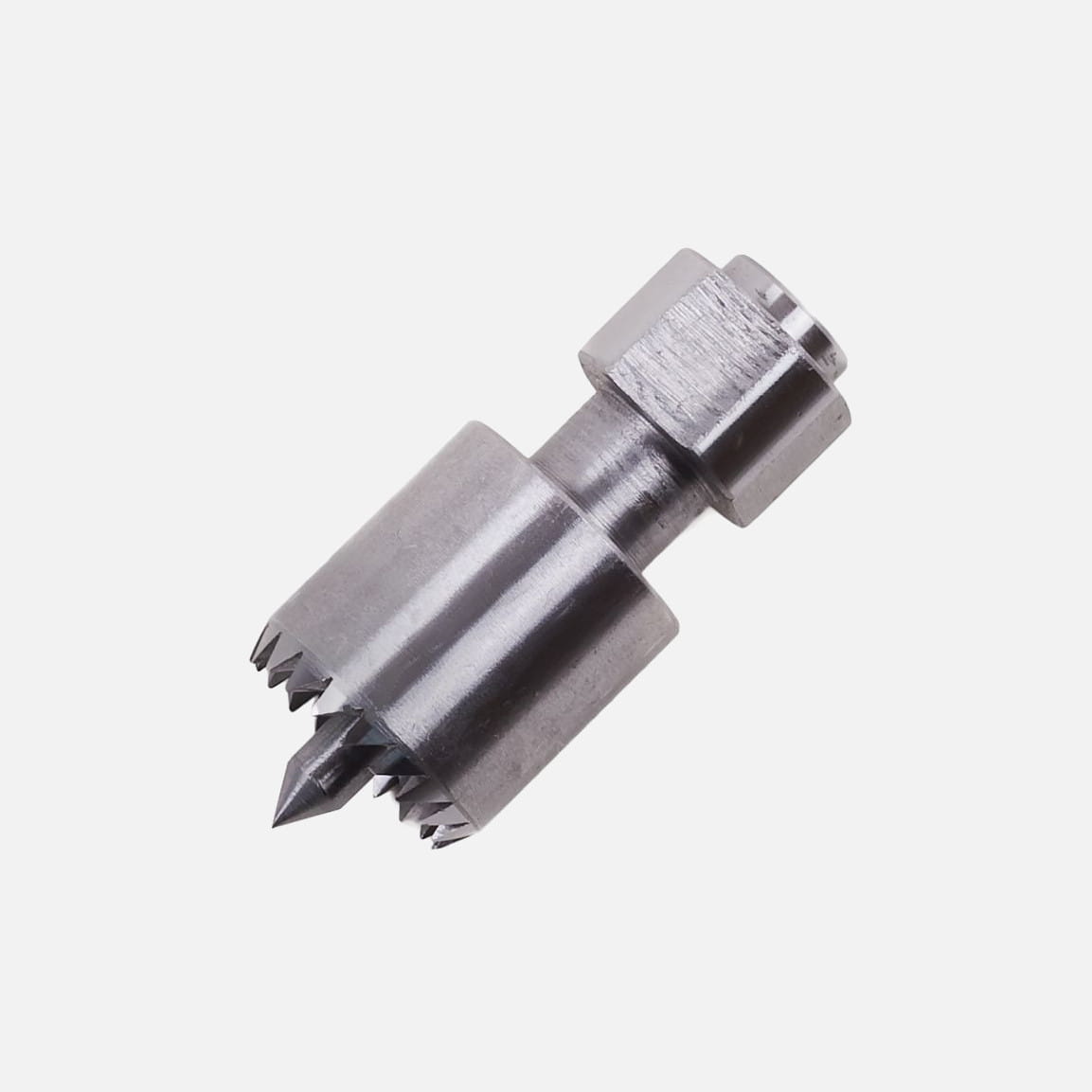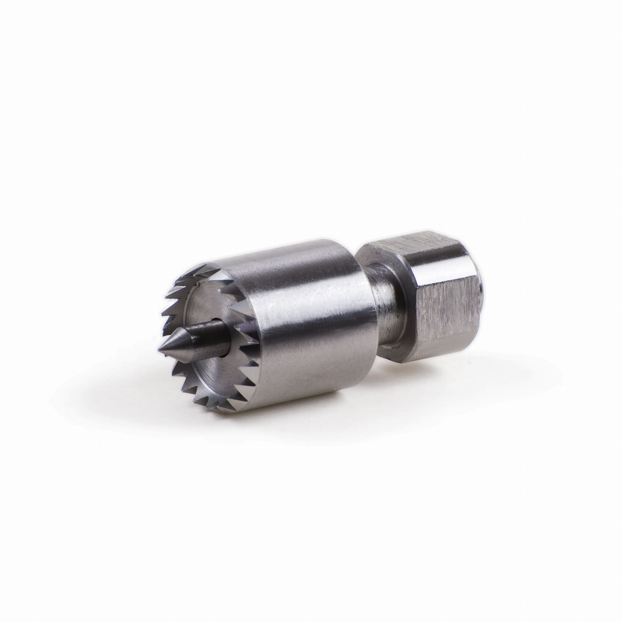 Kieł koronowy do użycia wraz z uchwytem i standardowymi szczękami. Dzięki temu nie musisz zdejmować uchwytu na czas toczenia wzdłużnego.