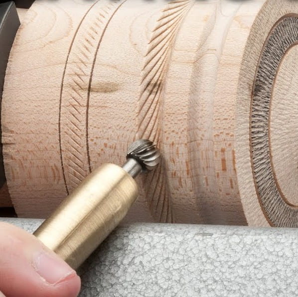 Narzędzie do teksturowania Henry Taylor (Diamic) Decorating Elf jest niezwykle łatwe w użyciu, dzięki któremu ozdobisz swoje prace tokarskie wymyślnymi wzorami. Można go używać do wszystkich projektów tokarskich, zarówno wzdłużnych, jak i mis czy wazonów. Szczególnie polecane do wytwarzania puszek, ozdób świątecznych, biżuterii, młynków, zabawek. W połączeniu z różnymi technikami barwienia czy wypalania pozwala na niezwykle kreatywne zastosowanie. Frez HSS pozwala na teksturowanie drewna, akrylu, kości słoniowej oraz powierzchni płaskich, wklęsłych i wypukłych.