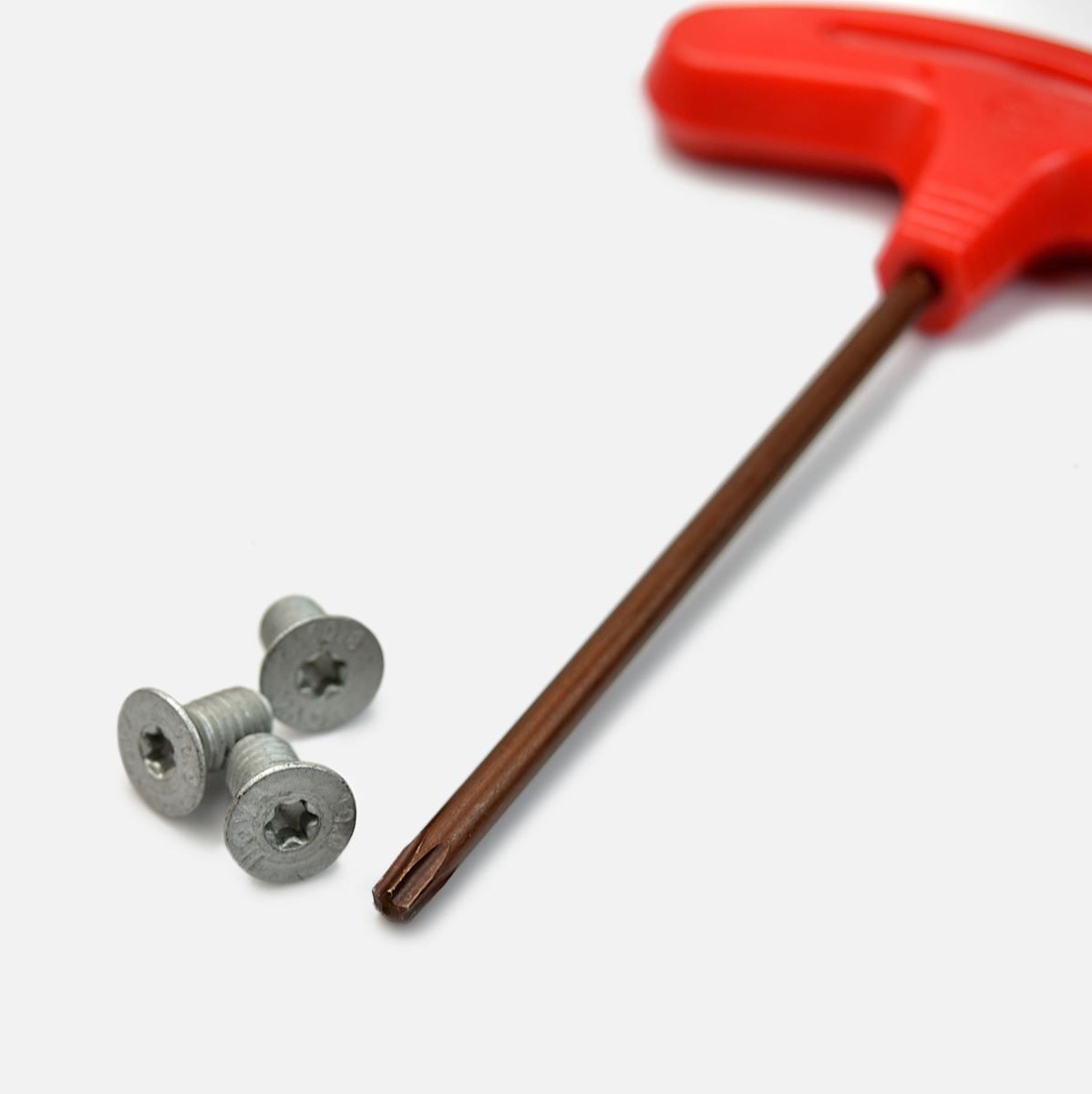 - Do mocowania szczęk służą śruby typu torx, a nie imbusowe, lecz te także są dalej kompatybilne; w ślad za tym mamy także nowy klucz z uchwytem T i jest to bardzo wygodny i pewny sposób przykręcania śrub.