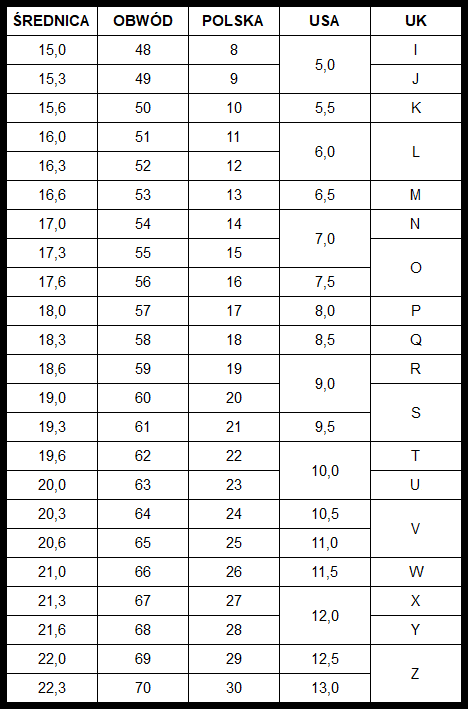 Rozmiary podawane są wg rozmiarówki UK / US. W przeliczeniu na rozmiar polski pomoże dołączona tabela. Rozmiary 5.5-8 US odpowiadają z reguły rozmiarom damskim, większe przeznaczone są dla mężczyzn.