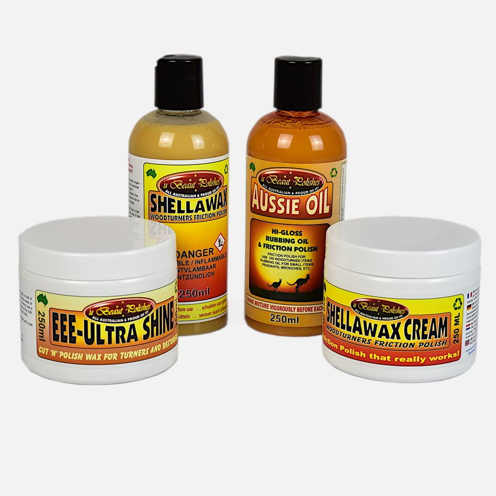 Komplet produktów marki U-Beaut Polishes przeznaczonych przede wszystkim na potrzeby tokarzy: