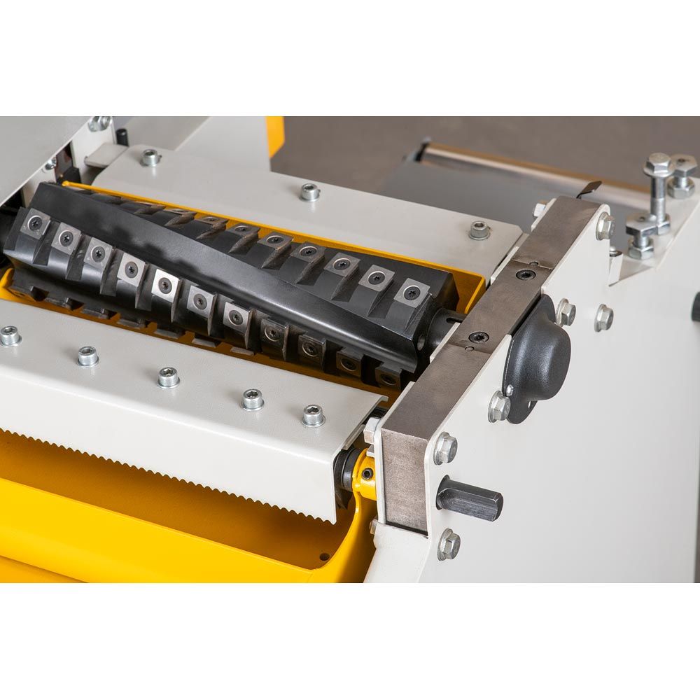 Oszczędzaj czas i wysiłek dzięki uchylnemu stołowi typu single lift. Przełączanie z trybu wyrówniarki na tryb grubościówki odbywa się szybko i bezproblemowo. Dodatkowo rozwiązanie to umożliwia pozostawienie prowadnicy na swoim miejscu.