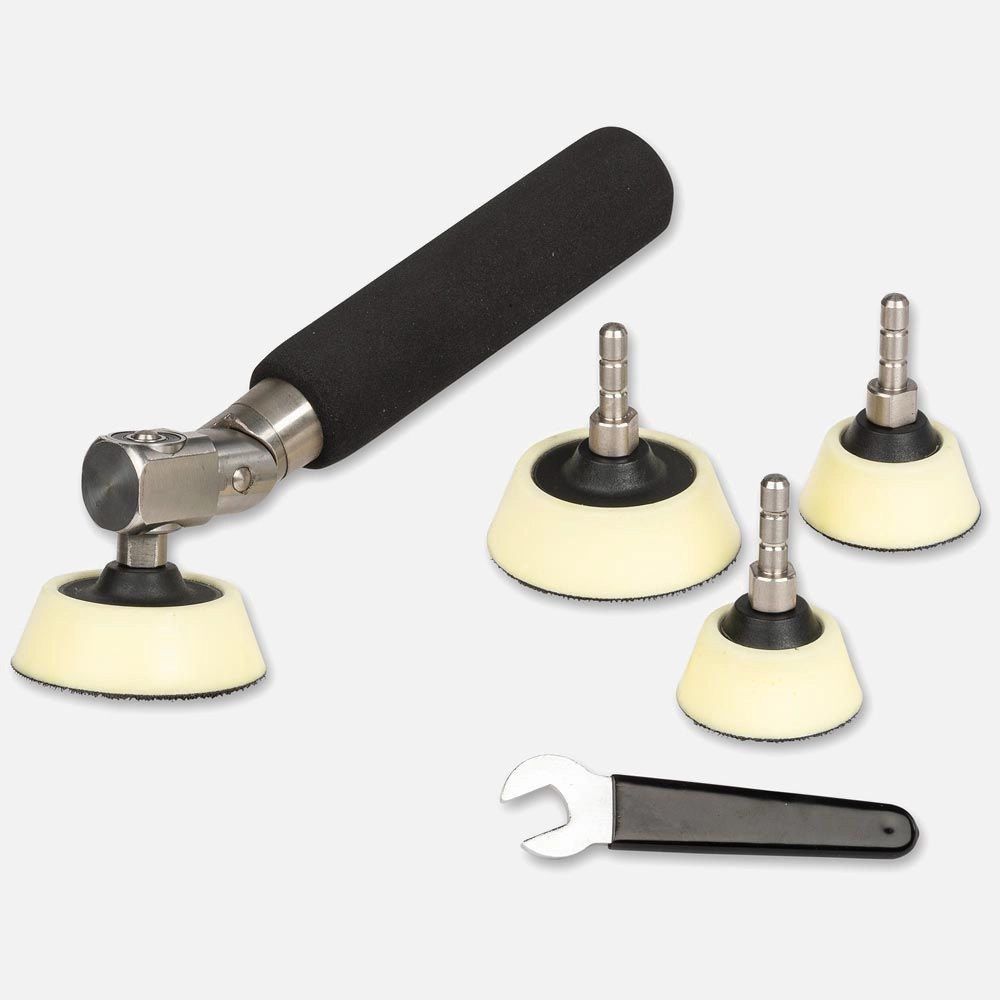 Na talerzyki należy nałożyć krążek ścierny z podkładem na rzep. Średnica krążka powinna być ok. 1-2 mm większa, niż średnica talerzyka. W ten sposób można szybko wymieniać krążki ścierne o kolejnych stopniach ziarnistości.