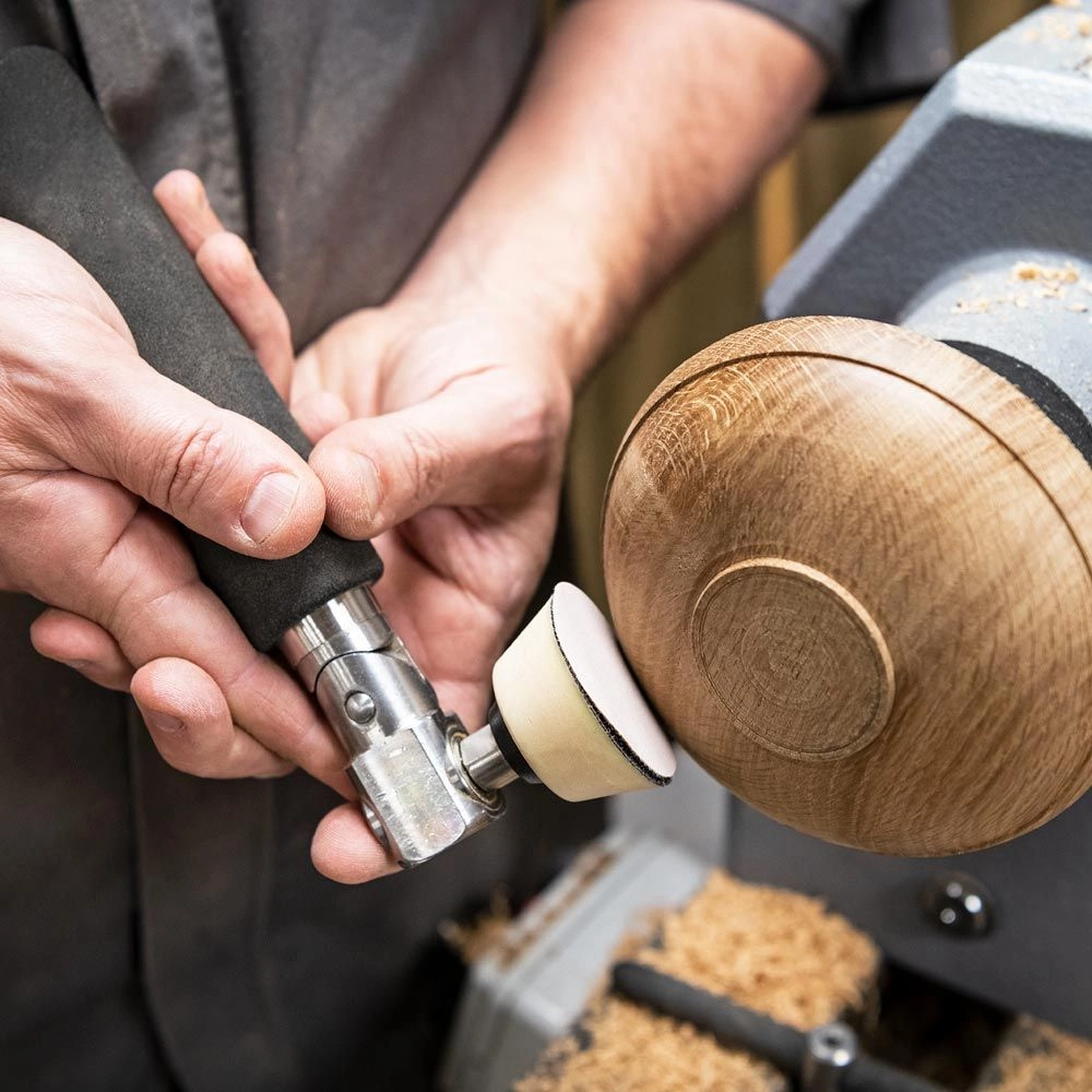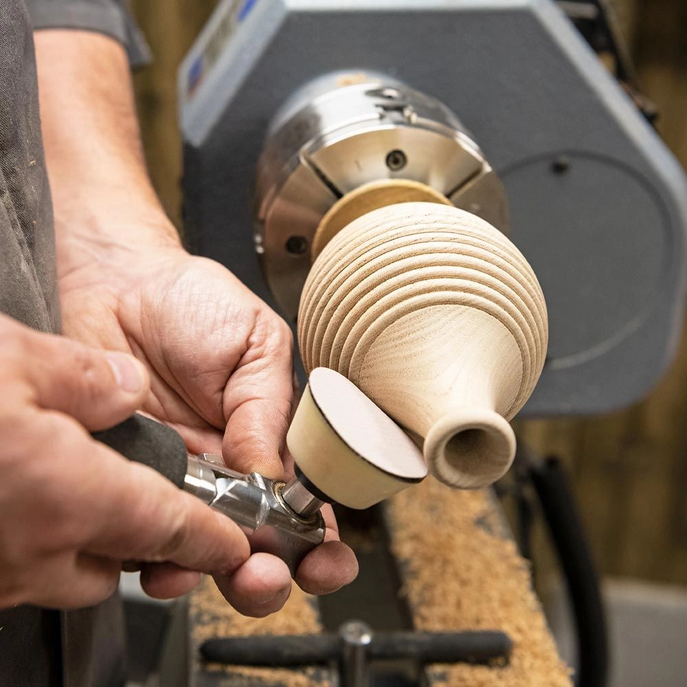 System polecamy w szczególności do szlifowania głębokich misek, także naturalnych, wazonów i innych wydrążonych obiektów. Po przyłożeniu talerzyka do obracającego się przedmiotu wchodzi on w rotację i następuje bardzo efektywne szlifowanie. Nie stosować zbyt mocnego nacisku. Stosować dobrej jakości materiały ścierne z podkładem na rzep.