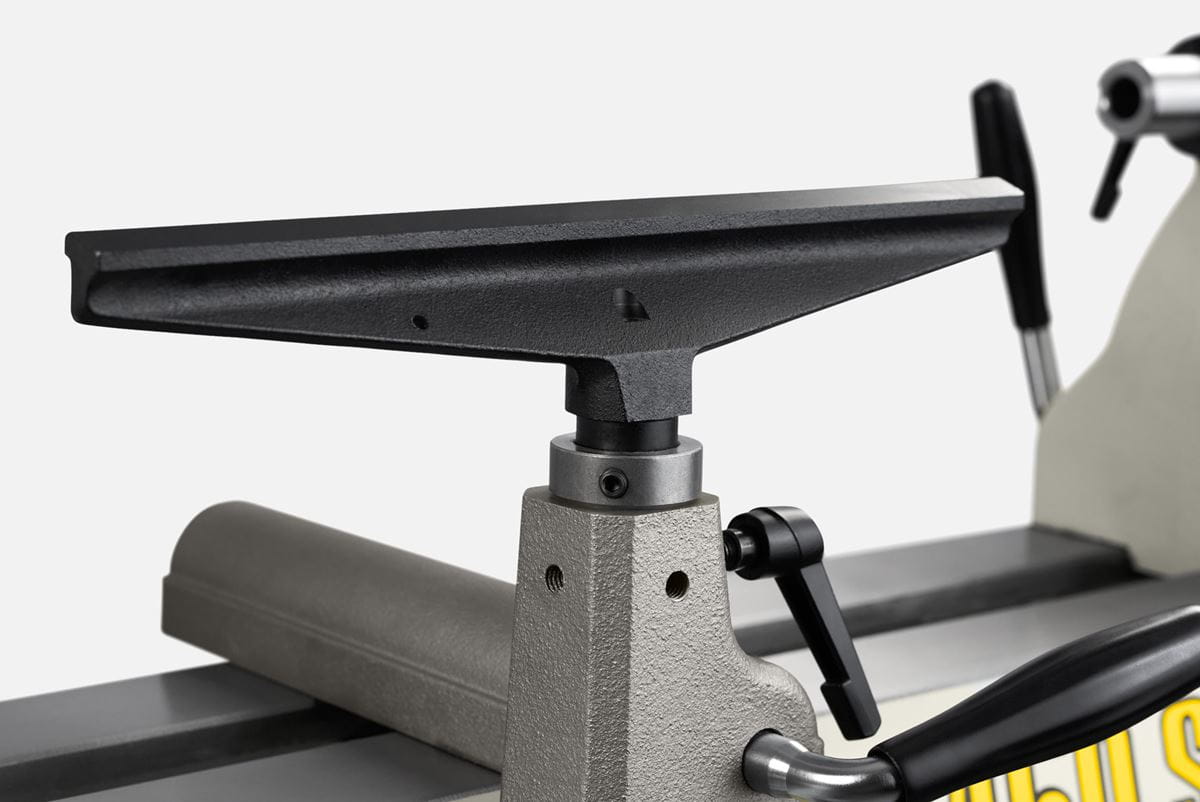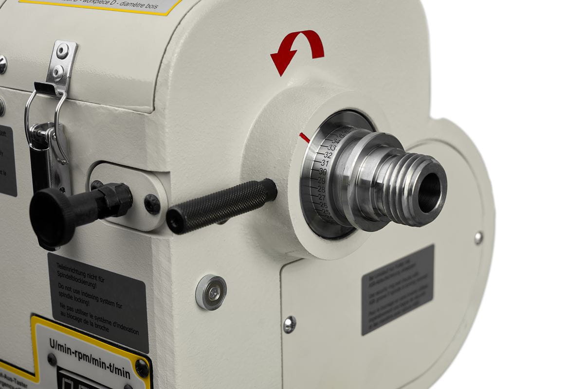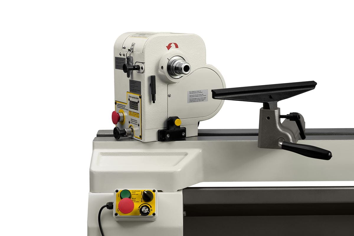 Sercem tokarki jest trwały i bezobsługowy silnik o mocy 1500 W, współpracujący z przemiennikiem częstotliwości. Zapewnia on płynną, stabilną pracę nawet przy ciężkich projektach oraz umożliwia bezproblemowe korzystanie z narzędzi wymagających dużych rezerw mocy, takich jak wycinaki do mis. Regulacja obrotów odbywa się za pomocą mobilnego panelu sterowania, który dzięki wbudowanemu magnesowi można wygodnie umieścić w zasięgu ręki. Obroty zaczynają się już od 40 obr/min co jest kluczowe do rozpoczęcia pracy z dużym i niewyważonym materiałem.