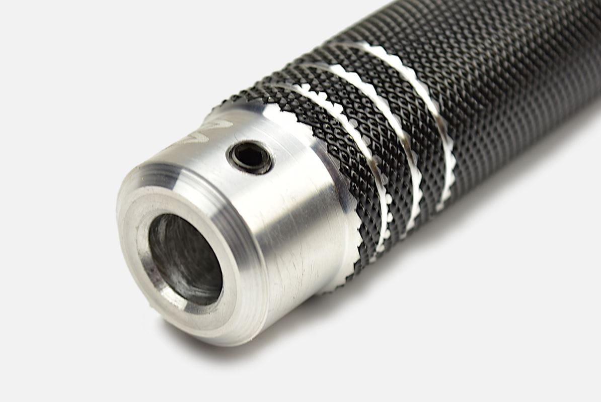 Uchwyt uniwersalny, aluminiowy na wymienne narzędzia, np. noże do mis, toczenia wzdłużnego, specjalistyczne. Posiada dwa wejścia: 10 i 13 mm. Powierzchnia porowata, antypoślizgowa.