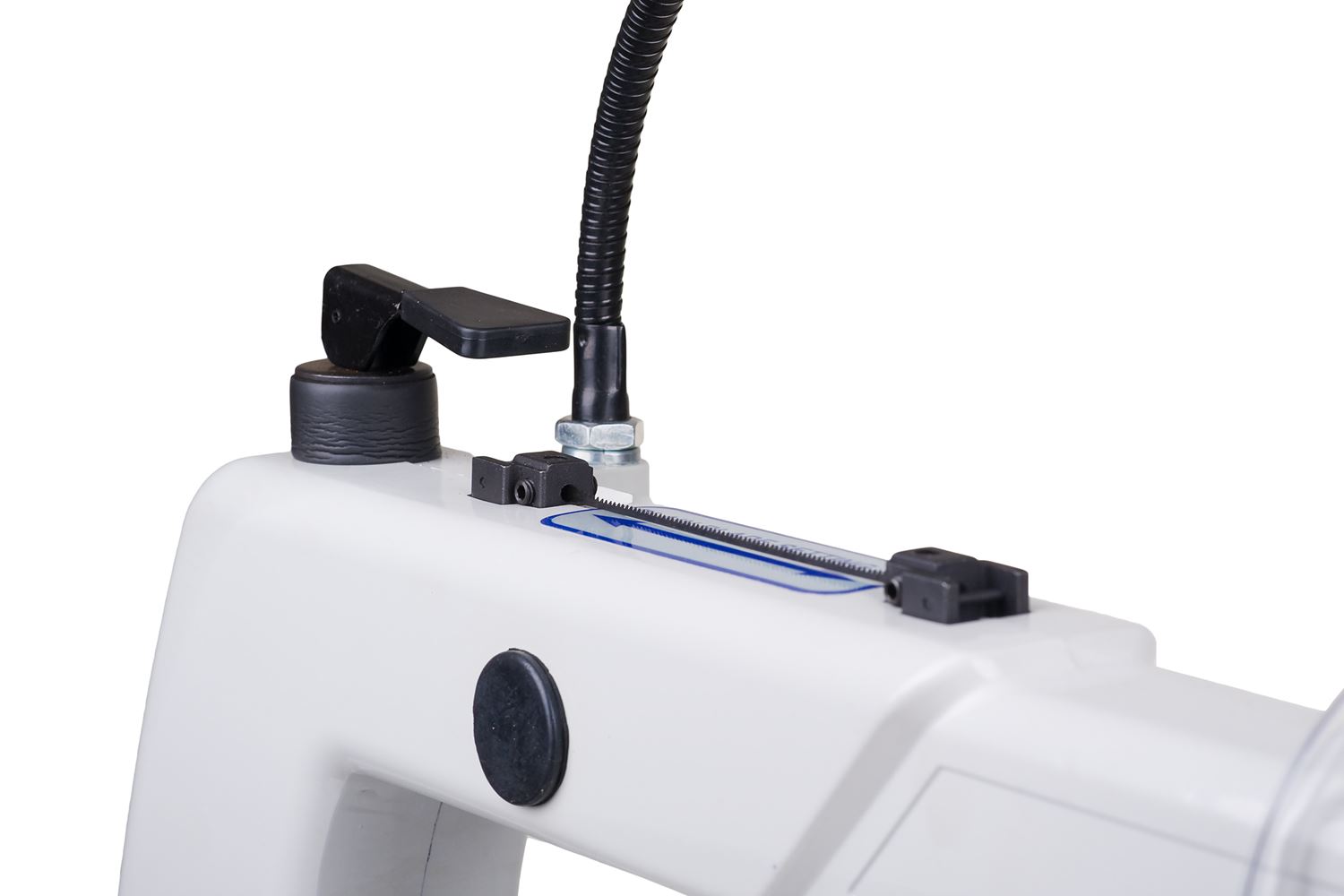 Lampka LED zasilana z baterii na elastycznej szyi pozwala na skierowanie światła bezpośrednio na obszar cięcia.