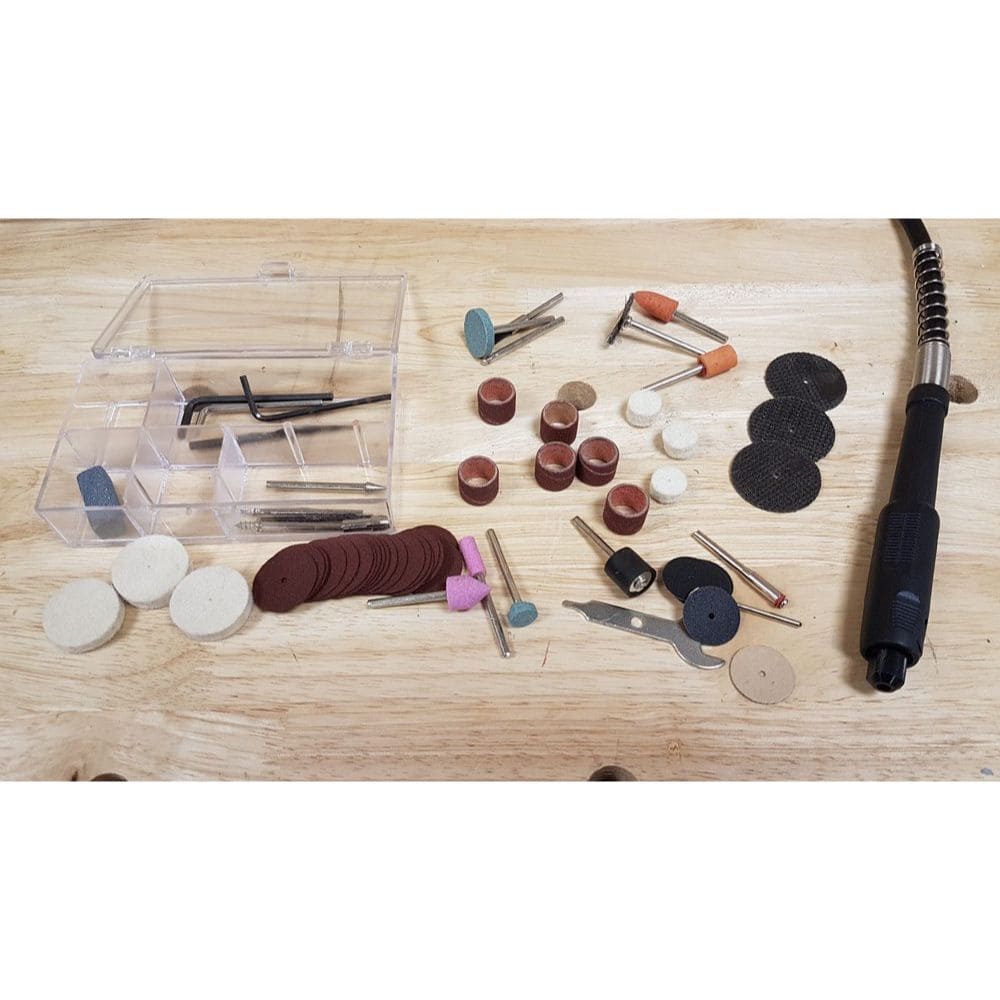 Wyróżniającą cechą Charnwooda znakomicie zwiększającą jego wszechstronność jest elastyczny wał obrotowy. Ma on uchwyt zaciskowy 3,2 mm (kompatybilny z narzędziami typu Dremel), a dodatkowo dołączono zestaw aż 64 akcesoriów umożliwiających szeroki zakres zastosowań, np. grawerowanie, rzeźbienie, frezowanie, cięcie, szlifowanie i polerowanie.