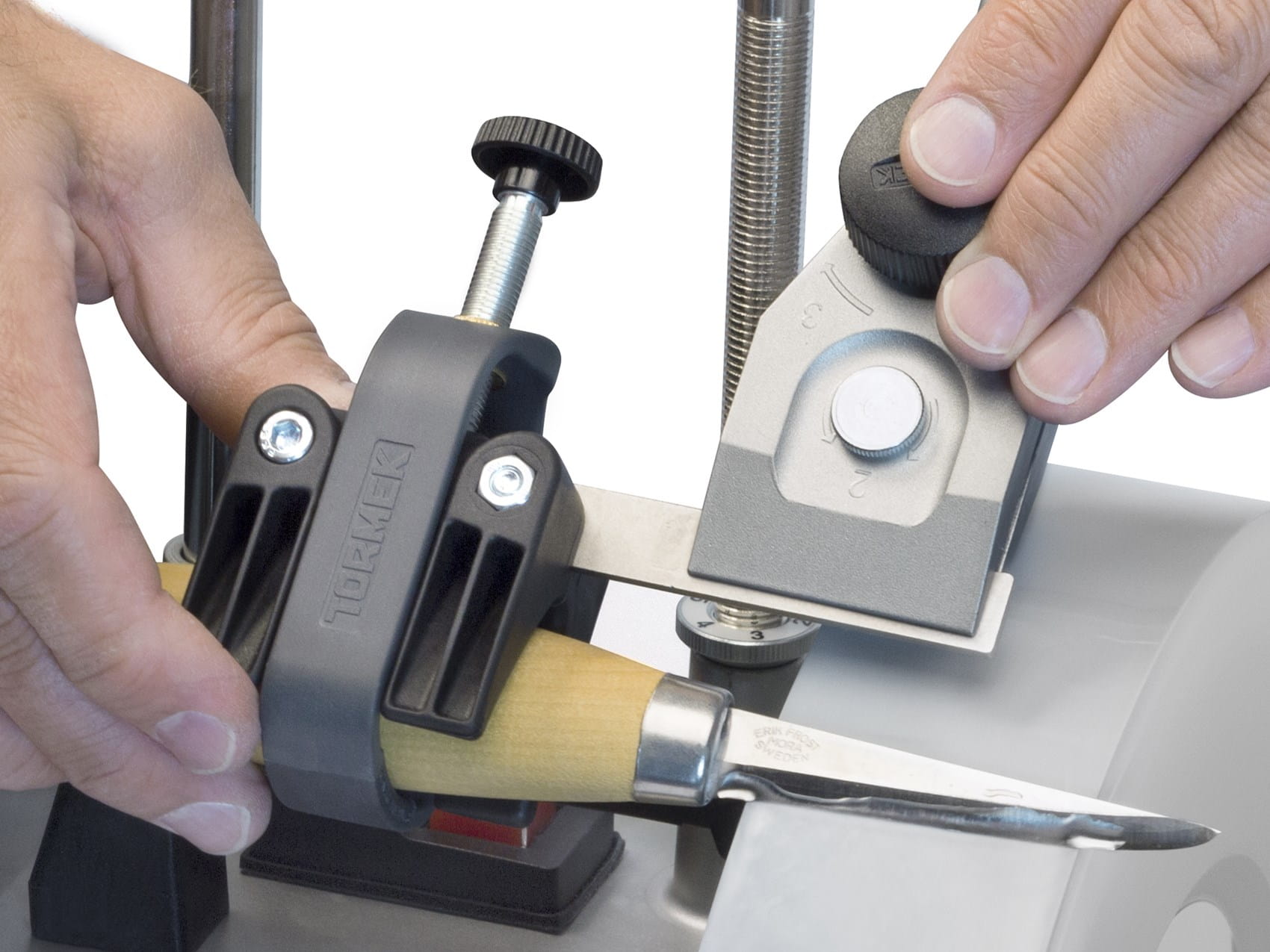 - Przyrząd do małych noży (SVM-00) - jeśli uchwyt SVM-45 będzie ciągle za duży, z pomocą przyjdzie ten przyrząd do małych noży.
